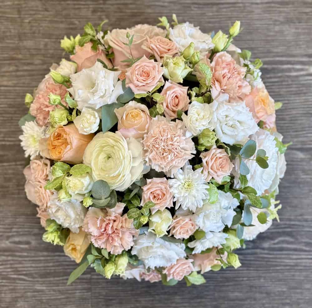 Pour préserver sa fraîcheur jusqu’à la cérémonie, nos artisans préparent la composition peu de temps avant la livraison. Ils utilisent uniquement des fleurs sélectionnées pour leur éclat et leur résistance.